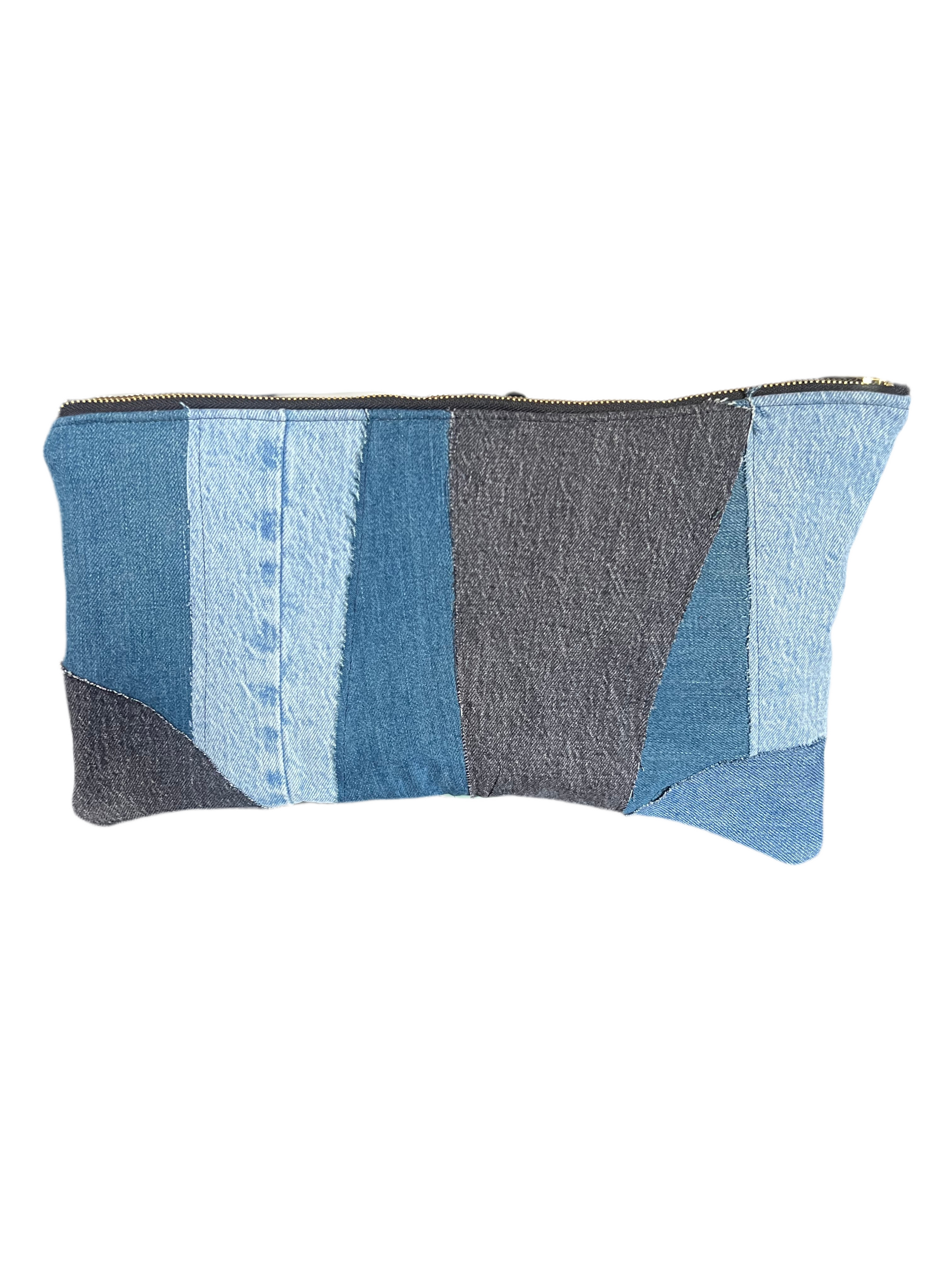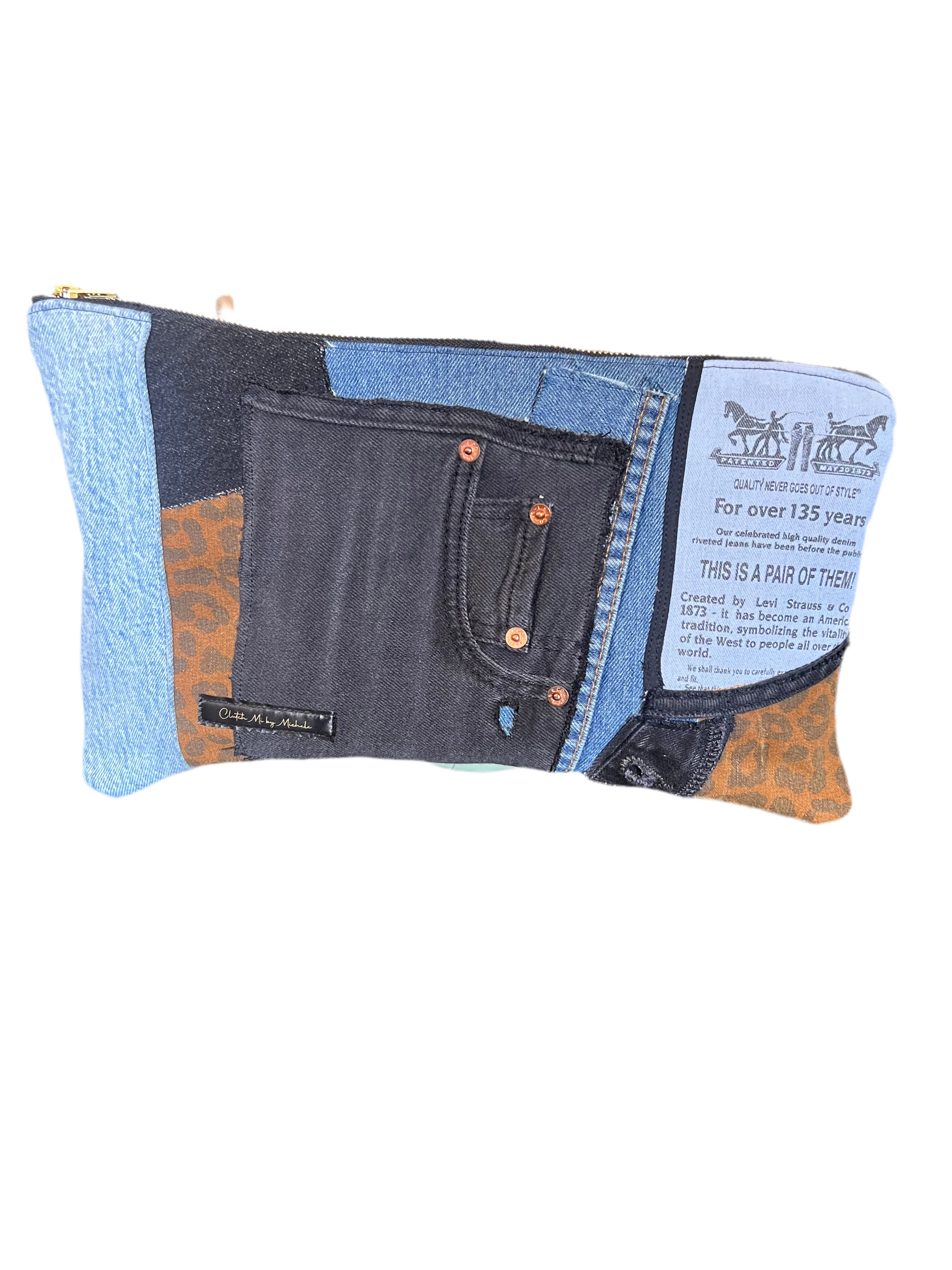 Transform your wardrobe with the Denim clutch! Made from upcycled dark denim, this clutch features a bold gold chain and stunning foil accents, perfect for adding some edge to any outfit. Take a risk and stand out from the crowd with this unique and stylish accessory.