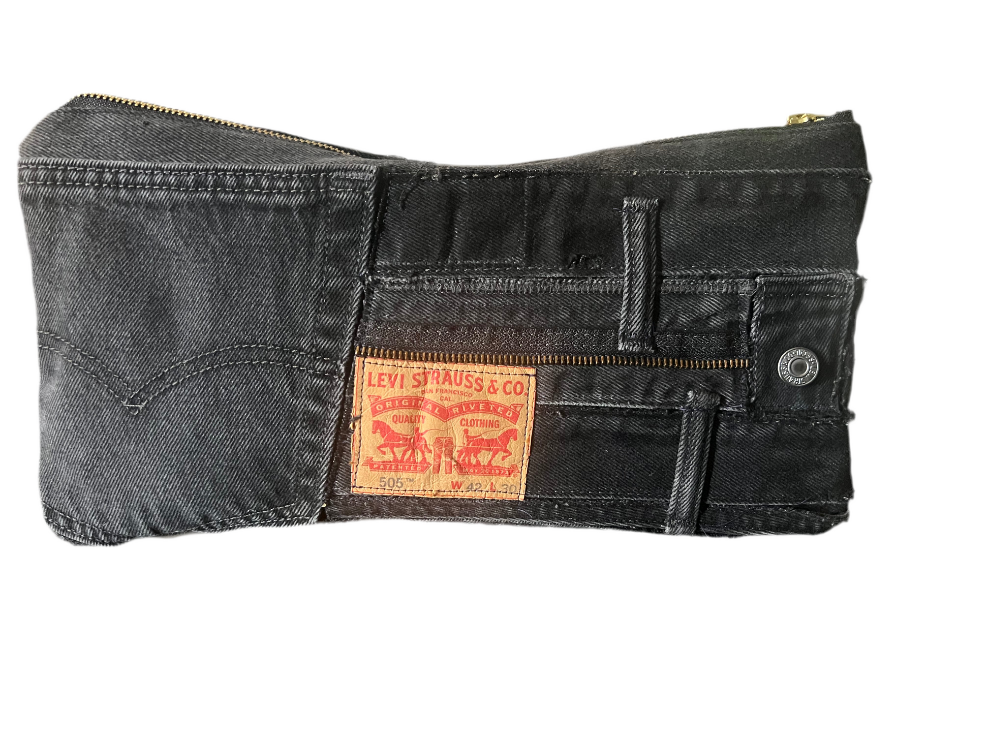Created in my mind, crafted by hand. This one‑of‑a‑kind clutch is made from authentic Levi’s® denim, reimagined into a bold yet timeless accessory. The classic texture of lived‑in jeans meets modern, minimal design — turning a piece of fashion history into a statement of sustainability.